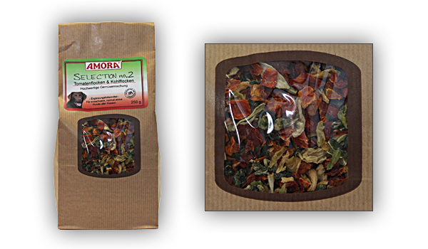 | Fütterungsempfehlung: Der Tagesbedarf variiert durch Faktoren wie Alter, Temperament, Gesundheitszustand und Aktivität und sollte darauf abgestimmt werden. 1g Trockengemüse entspricht ca. 10g frischer Ware. Fütterungsempfehlung durchschnittlicher Hund 20kg: Benötigt zur Fleischration ca. 8 - 10g AMORA Gemüsemischung am Tag. | ||
